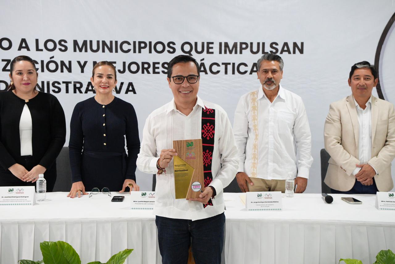En su mensaje de bienvenida la presidenta del IAP Chiapas, expresó que los municipios que reciben reconocimientos por su participación y fortalecimiento de capacidades dentro del programa “Cero Observaciones” son: Arriaga, Alejandro Aquiles Patrinos Fernández; Berriozábal, C. Jorge Arturo Acero Gómez; Chilón, C. Mario Hernández Aguilar; Comitán de Domínguez, C. Mario Antonio Guillen Domínguez; Escuintla, C. Carlos González Moreno; Huehuetán, C. Sixto López Pérez; La Independencia, C. Jhony Sebastián López López; Ocosingo, C. Manuela Angélica Méndez Cruz; Solosuchiapa, C. Fernando Aparicio Gómez; Tonalá, C. Manuel de Jesús Narcia Coutiño; Tuzantán, C. Grissel Vázquez Zambrano; Villa Comaltitlán, C. Gerardo Pérez Gómez; Tecpatán, C. Cesar Edgar Marín Gómez.