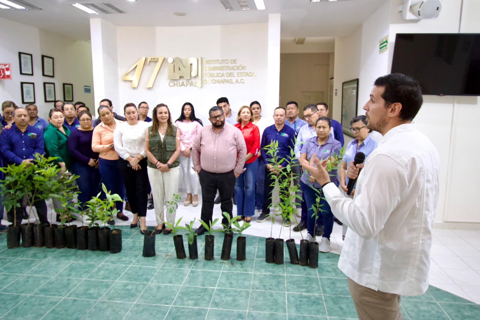 Tuxtla Gutiérrez, Chiapas; jueves 5 de junio de 2025.- En el marco del Día Mundial del Medio Ambiente, el Instituto de Administración Pública del Estado de Chiapas (IAP Chiapas) realizó una entrega simbólica de árboles a su personal, como una acción para fomentar la conciencia ecológica y la preservación del entorno natural.